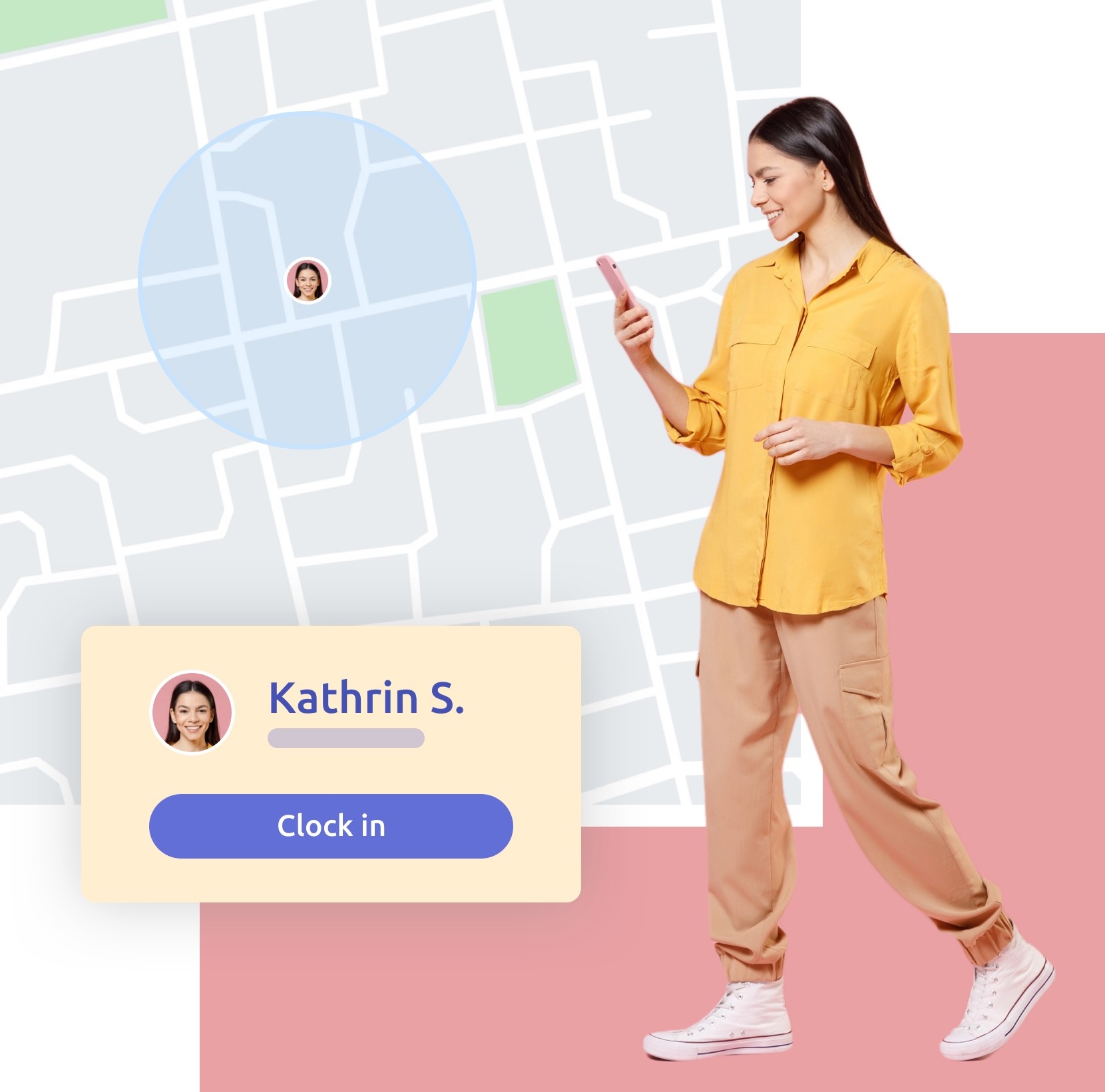 Allow clocking in and out only at a specific location or at registered shift addresses. Adjust the radius of the clocking-allowance, so that employees can only clock in if they are in range of their workplace.